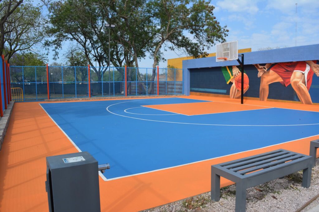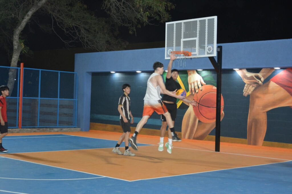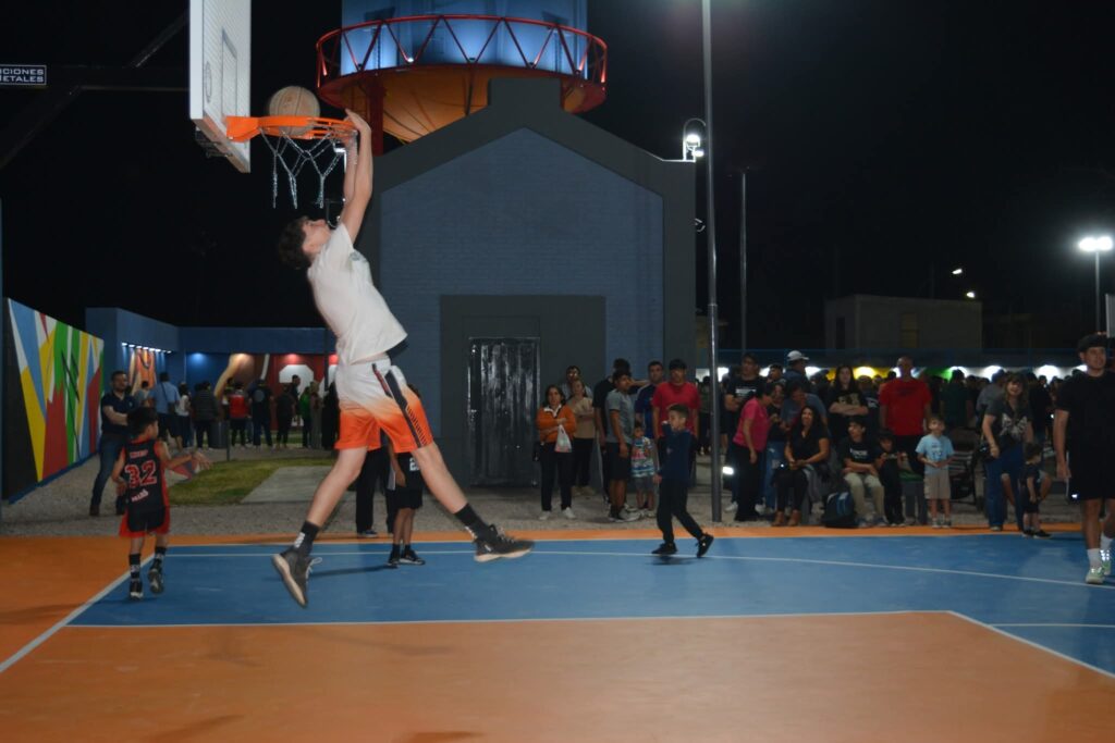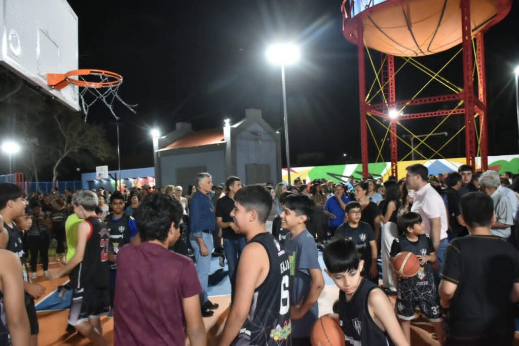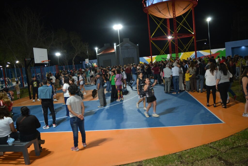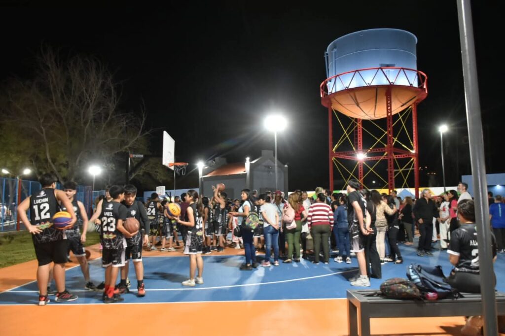 El proyecto abarcó más de 2.000 m² e incluyó cerramiento perimetral, iluminación LED, ampliación de veredas, rampas de accesibilidad, zonas de descanso y nuevas dársenas de estacionamiento. Además, se construyeron dos canchas de básquet 3×3 y dos de fútbol tenis 1 vs 1, pensadas como espacios recreativos para jóvenes y familias. La obra fue realizada íntegramente con fondos municipales.