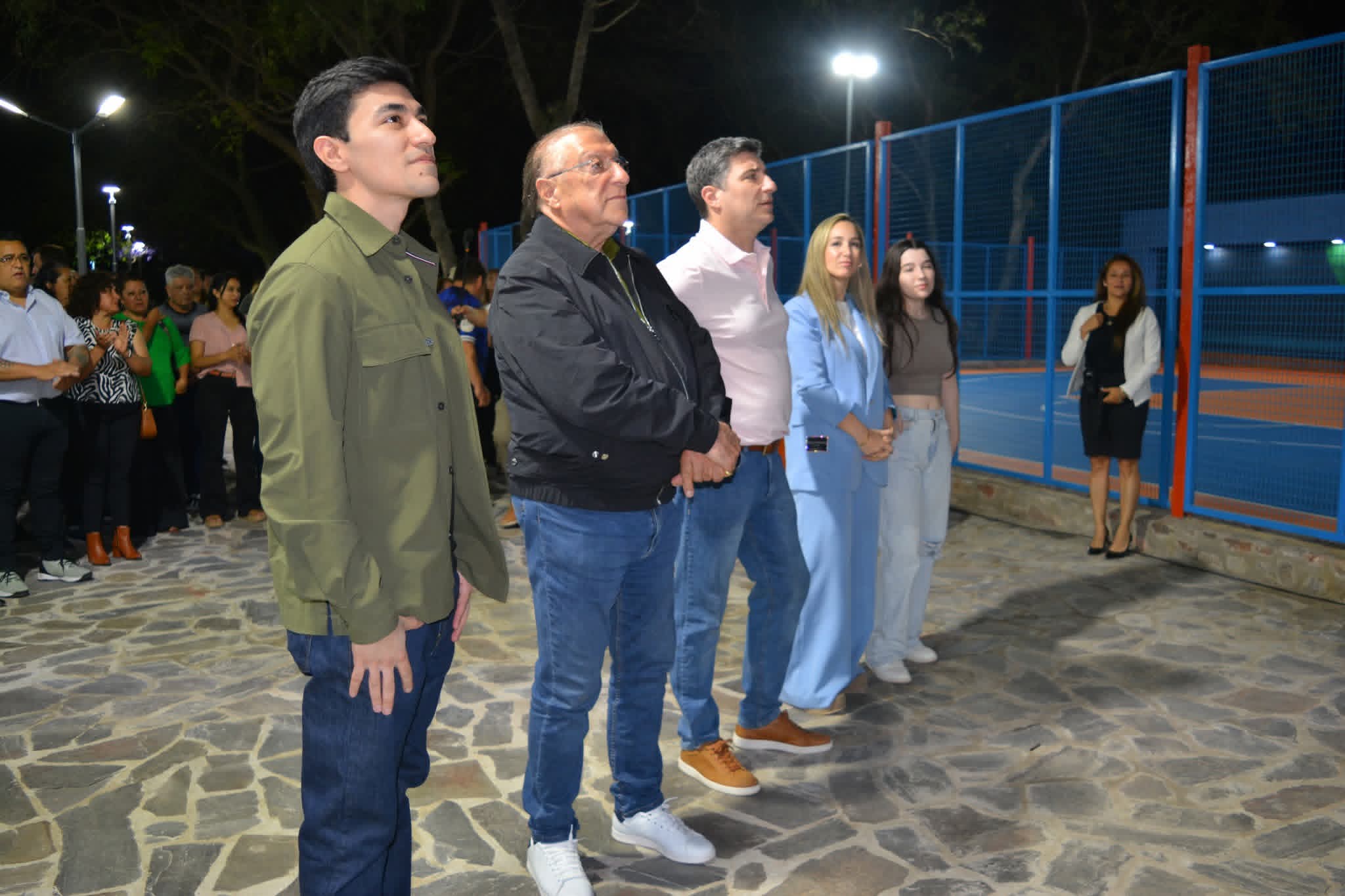 El jefe comunal estuvo acompañado por el Secretario de Gobierno, Sebastián Salim; la presidenta del Concejo Deliberante, Lic. Lorena Rojas; los concejales Dra. Paula Dahbar y Julio Ávila; la Secretaria Privada, Lucía López; el Subsecretario de Deportes y Recreación, Lic. Cristian González; el Subsecretario de Gobierno, Carlos Nazar, junto a autoridades del Ejecutivo Municipal, obreros comunales y cientos de vecinos.