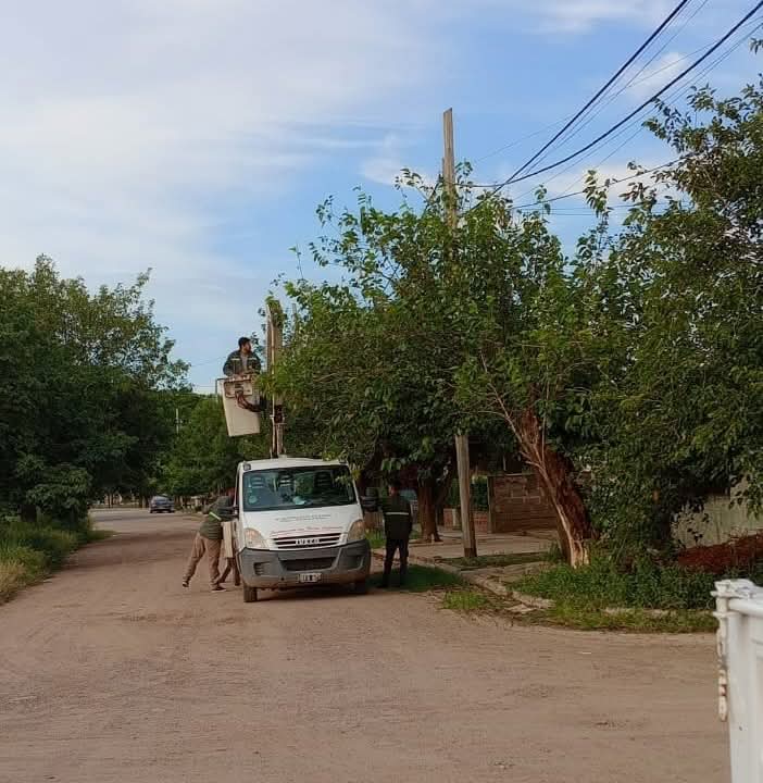 El municipio de Frías avanza con los trabajos para optimizar el servicio de alumbrado público en distintos barrios de la ciudad.