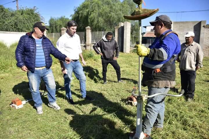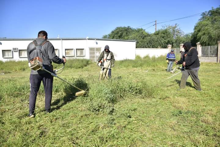 La visita del Secretario de Gobierno a la Esc. N° 201, se completo con el trabajo de desmalezamiento realiza por personal municipal (Sección Desmalezamiento de Sec. de Obras Públicas) que trabajaron en la limpieza del predio del establecimiento.